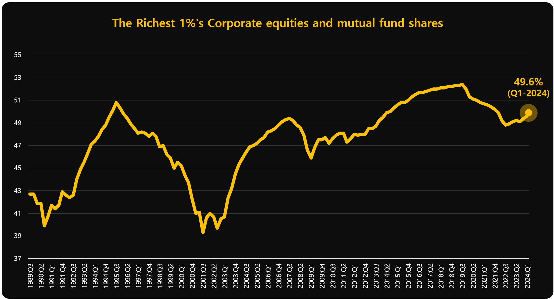 미국 부자 상위 1%가 보유한 미국 주식 비중 49.6% 미국 Federal Reserve System에서 발표한 미국 부자 상위 1%가 보유한 미국 주식 비중입니다. 미국주식에 투자해야하는 이유 2024.07.28