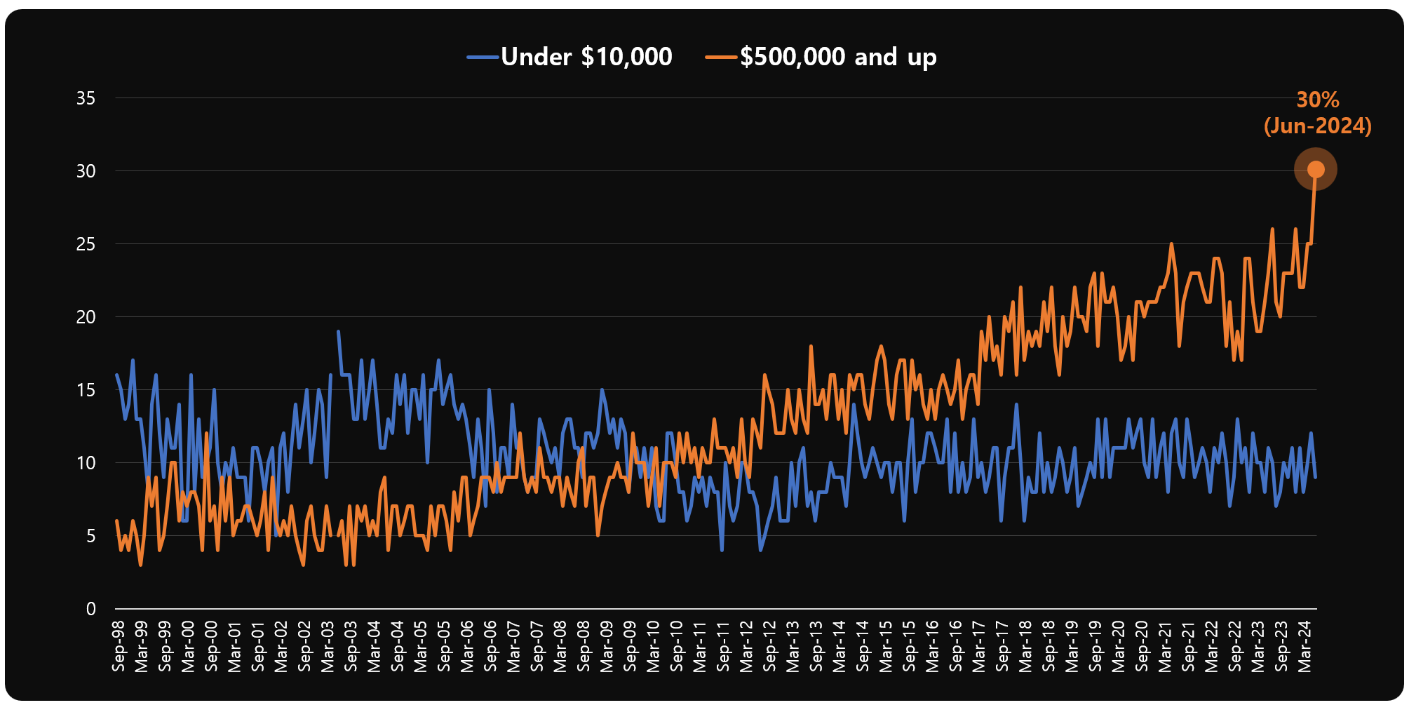 주식 50만불 이상 가지고 있는 미국 인구 비중 30% 미시건대에서 조사한 결과 "University of Michigan Survey of Consumers: Current value of Stock market investment"에 따르면 설문조사에 응답자의 30%가 주식 50만불 이상을 보유하고 있는 것으로 조사되었다. 1998년 최초로 조사한 이래 최고치이다. 그러나 10만불 이하의 주식을 보유한 응답자는 10% 수준으로 계속 정체되어있다. 미국주식에 투자해야하는 이유 2024.07.28